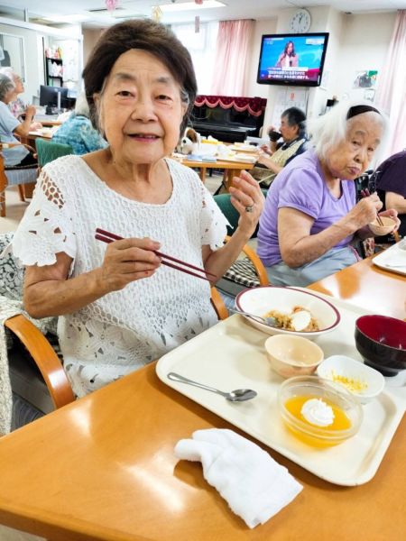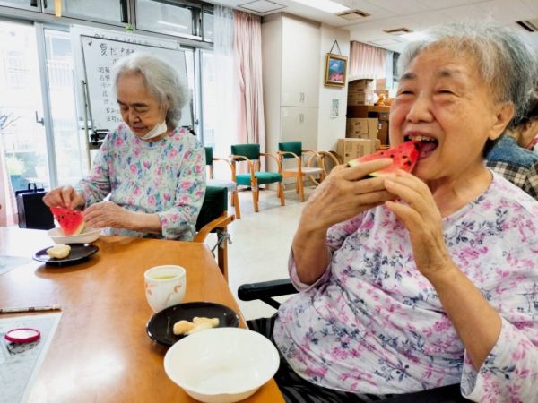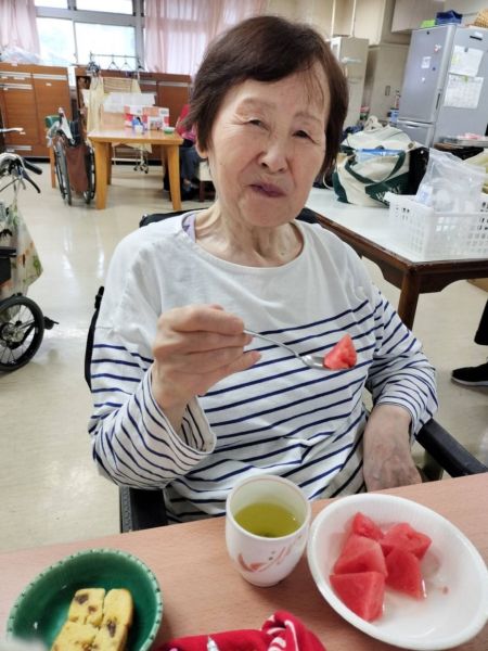 デイサロンの夏祭り『星祭り』を開催しました!毎年星祭りの日には大きなスイカを買ってきてみんなで切り分けて食べます。