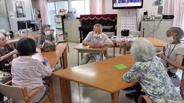 『折り紙教室』が急遽開催されました!「あら、案外覚えているものね!」とあっという間に鶴の形を折ったり