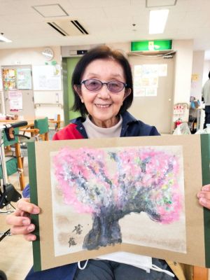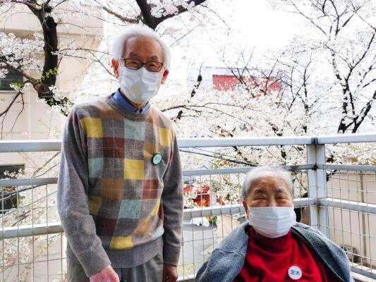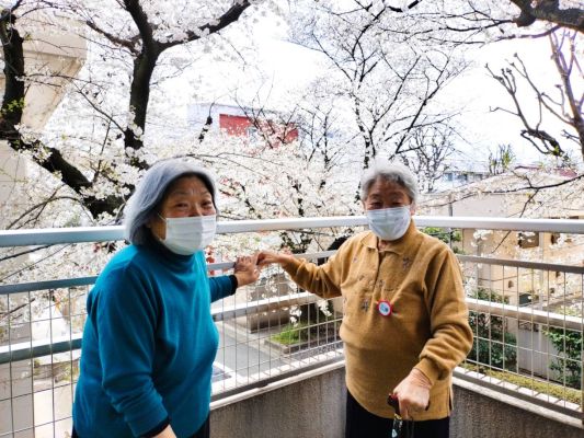 上を見上げて春を感じます!デイのベランダはとても眺めがよく、桜がとても綺麗です!!!