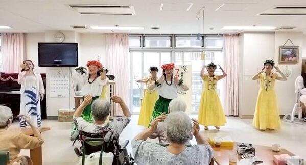 毎年恒例の演芸会を開催しました。「フラダンスを踊ろう会」の皆様がボランティアで来てくれました。