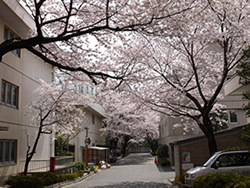 愛隣会の中央通路の両側には、樹齢60年は超えたと思われる太い桜が約15本あり、毎年見事な桜のアーチになります。愛隣会の風物詩といってよいでしょう。