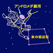 ロメダ座は、肉眼で唯一見える有名なアンドロメダ大星雲があります。私も何回か晴れた日に観てみましたが、東京の街中では肉眼で確認するのは困難でした。双眼鏡で存在を確認するのが精一杯です。空気の澄んだ田舎に行けば、しっかりと肉眼で見ることが出来ます。私たち人類が棲む地球の家族:太陽系が属している銀河系のお隣さん、約200万光年彼方にそれはあります。私たちが目にした姿は実は200万年前の光で、ひょっとすると"今"はどうなっているのか分からないかも知れません?何とも気が遠くなるようなスケールです。