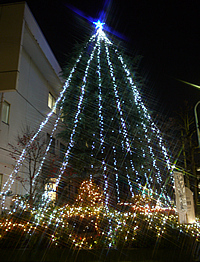 愛隣会入り口のヒマラヤ杉にイルミネーション点灯!