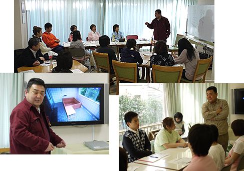 新しい介護や個浴について学ぶ会を開催し、全職員がお話をお聞きしました。